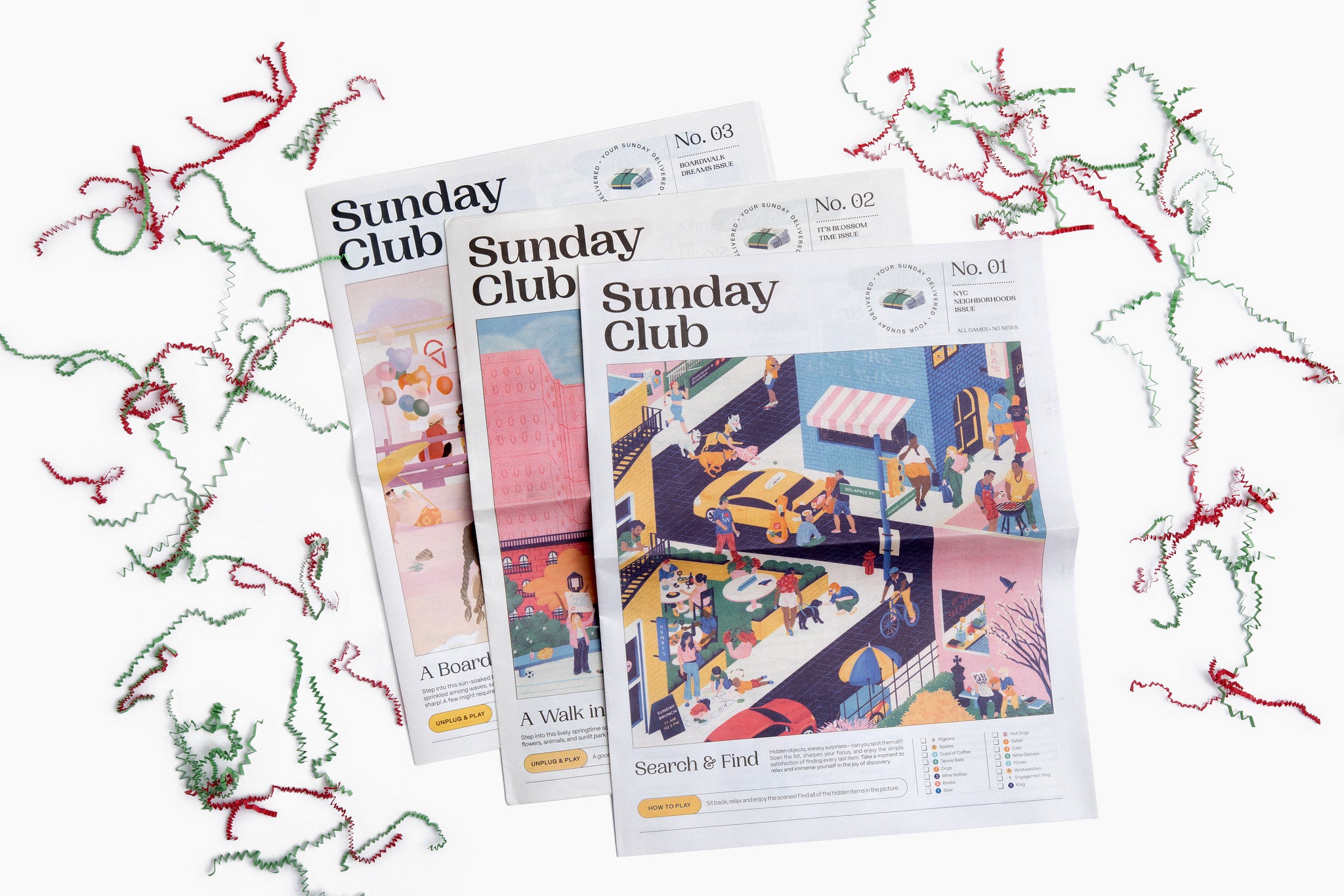 NYC Neighborhoods, It’s Blossom Time, and Boardwalk Dreams — three themed, 12-page print issues filled with crosswords, wordplay, logic puzzles, picture hunts, and more.
