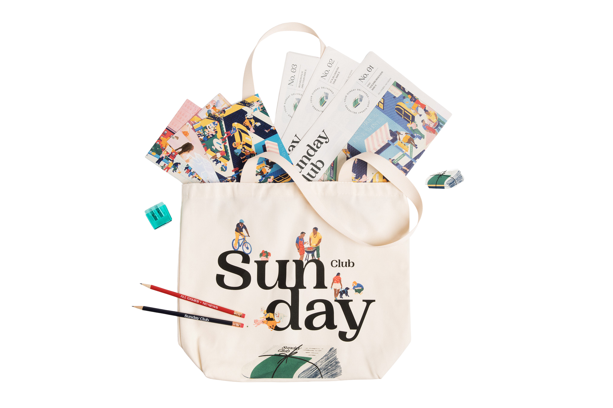 - Your choice of apparel: a Sunday Club tote or hat